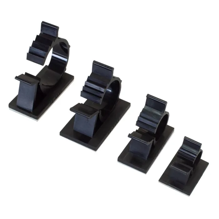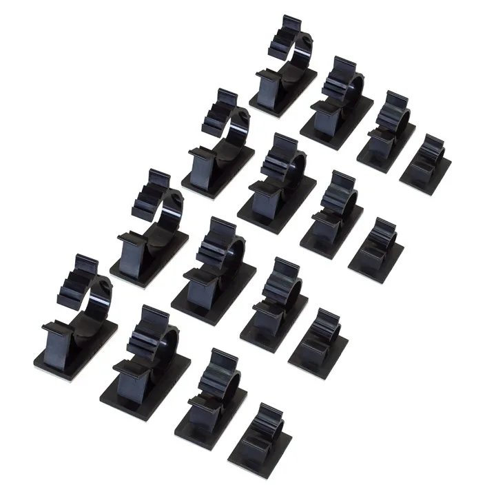 4 HANDY SIZES: This pack of 20 self-adhesive cable clips contains 4 handy sizes (5 of each): 28mm, 22mm, 16mm, and 10mm. ADHERE TO MOST CLEAN SURFACES: They stick to most clean, smooth surfaces, including desks, tables, walls, filing cabinets and furniture. MANY APPLICATIONS: They are ideal for securing wires and round cables, for example for computers, TVs, Christmas lights, USB cables, etc. With 4 different cable diameter options, they are ideal for thicker cords such as TV power cables. EASY TO USE: The self adhesive wire clips are easy to use, quickly tying and untying cord, and can be used repeatedly. Kit contents: 5pcs x ( 28mm, 22mm, 16mm, 10mm)