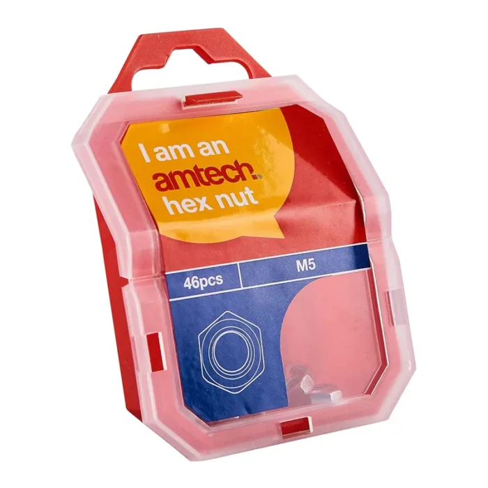 Amtech Z0395 Bright zinc plated steel hex nuts. Supplied in re-usable plastic storage case.