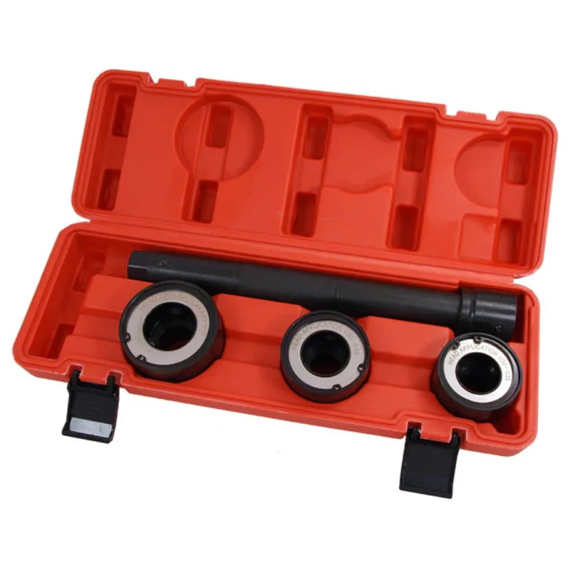 Track Rod End Remover / Installer Set – 4pc. For easy removal and replacement of the inner steering ball joint without the need to dismantle the steering rack from the bulkhead.